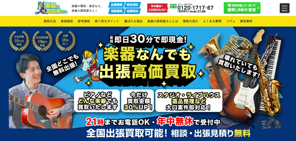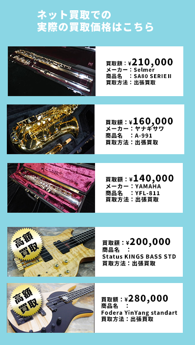 サイトに楽器の買取相場一覧 があり相場をざっくり 把握できるのが魅力です。